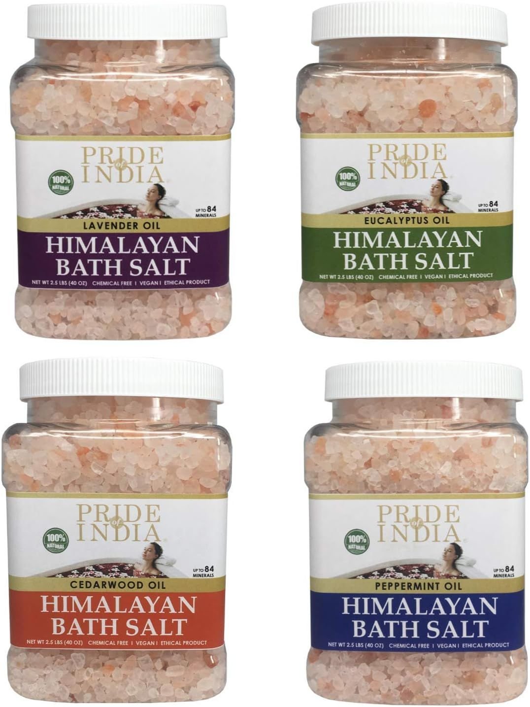Pride of India incorporates organically-grown food and herbal products from India into our daily life. These all-natural ingredients help enhance the overall health of the human body. Pride of India is family owned and operated, and we manufacture our products in the USA. This Himalayan Pink Rock Salt is great for soaking in the bath or creating your own salt scrubs. Himalayan Pink Rock Salt is the purest form of salt on Earth as it does not undergo any artificial treatment or refining. The reddish-pink appearance of our salt proves its purity, and it contains up to 84 essential minerals that are quintessential for the human body. Combined with top quality therapeutic essential oils, our bathing salt reinvigorates your senses and revitalizes your body. Bath salts help your body relax and detox, in addition to soothing sore muscles and reducing tension. A bath with our salts is the perfect spa treatment for soothing muscle aches, detoxing the skin, and imparting a natural body aroma. To create the perfect salt bath, mix 2 to 3 cups of Himalayan bath salt with hot water in your bathtub. Swirl the salts around until they dissolve. Then, sit back and relax! If you want to create your own salt scrub, combine 1 teaspoon of pink Himalayan salt with your body or bath serum. Add some oil to attain a gel consistency. You can mix the bath salts with other essential oils to create the perfect blend of aroma and therapeutic properties for your body. Take some time for yourself, draw a bath, and naturally relax with these pink Himalayan bath salts.