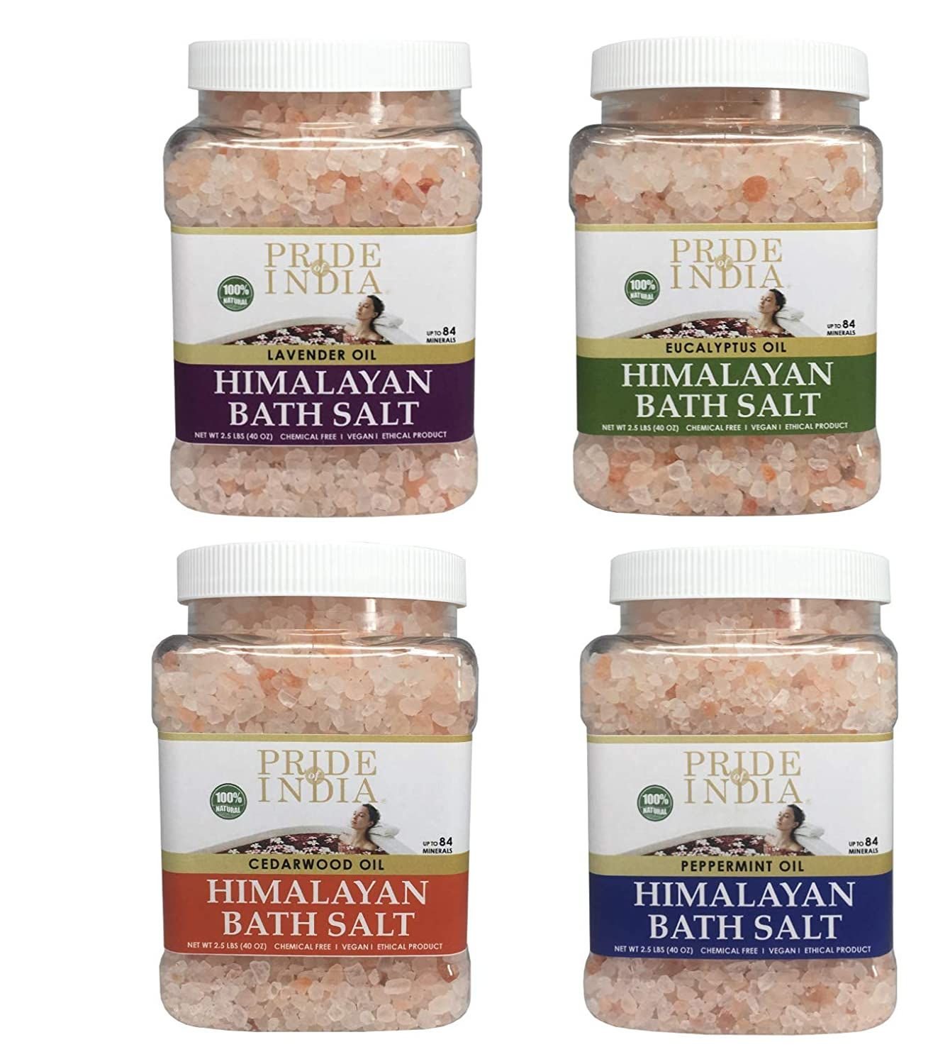 2.BATH SALT WITH PEPPERMINT OIL: This large Himalayan bath salt contains up to 85 other minerals to help you get the most benefits out of your bath. Peppermint oil helps relieve headaches, boost energy, and improve mental focus. Rock salts have traditionally been used in baths to promote healing, relieve sore muscles, and reduce stress. The ingredients in this bath salt are 100% natural.