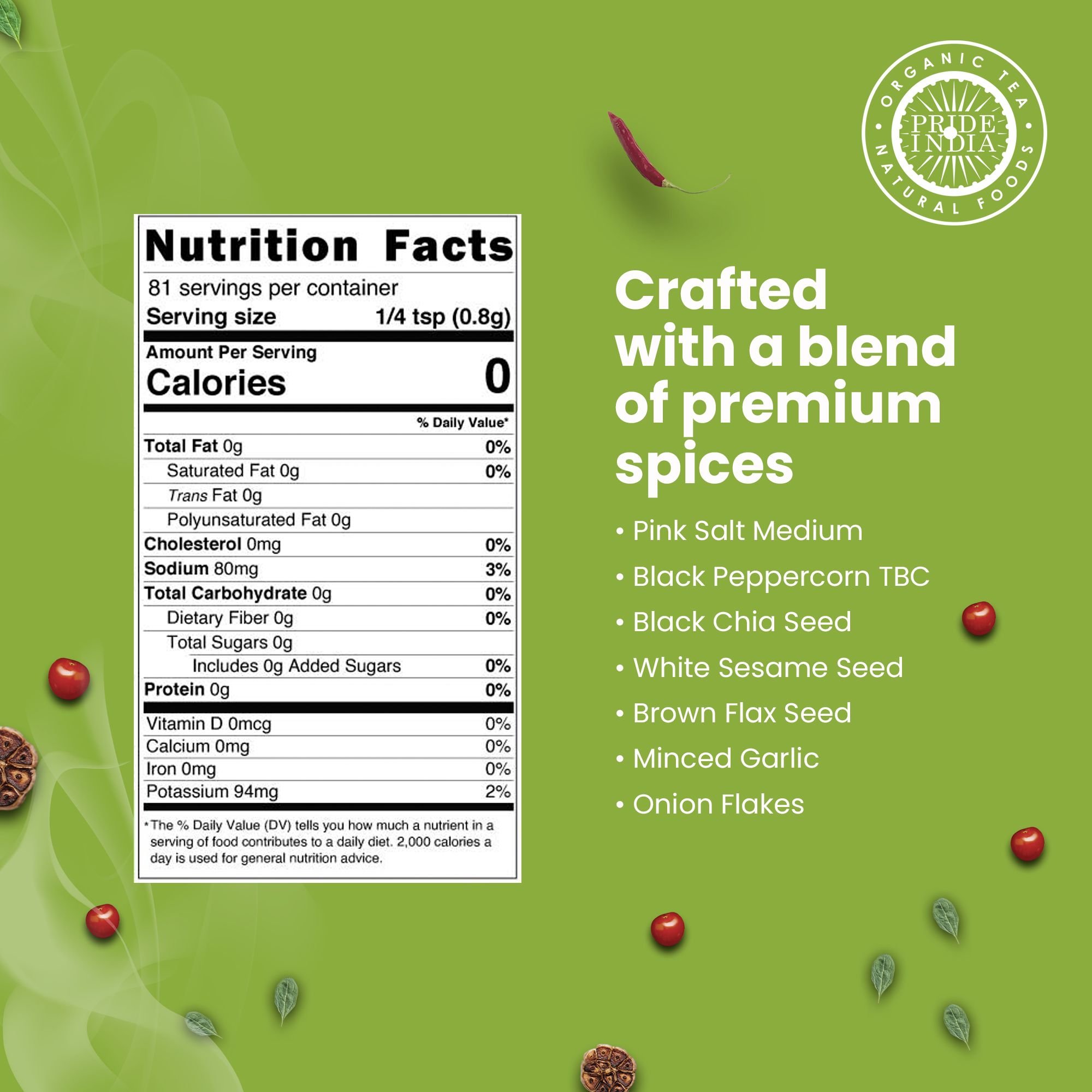 FUSION LIKE NEVER BEFORE: Indulge in the finest breakfast experience with our Breakfast Seasoning, crafted from a selection of the highest quality ingredients. We've left no stone unturned in our pursuit of culinary perfection, using only premium herbs and spices. Our breakfast seasoning includes Pink Salt, Black Peppercorn, Black Chia Seed, White Sesame Seed, Brown Flax Seed, Minced Garlic, and Onion Flakes. Sustainably sourced and hygienically processed, each bottle assures you of taste and health.