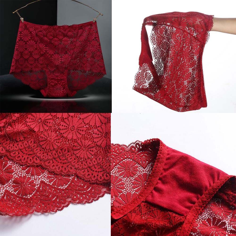 Home > 3 Pcs Lace Sexy Bikini Panties Daisy Mesh Underwear Plus Size Boyshorts Panties for Women Pack,Red Purplish Grey Wine Red